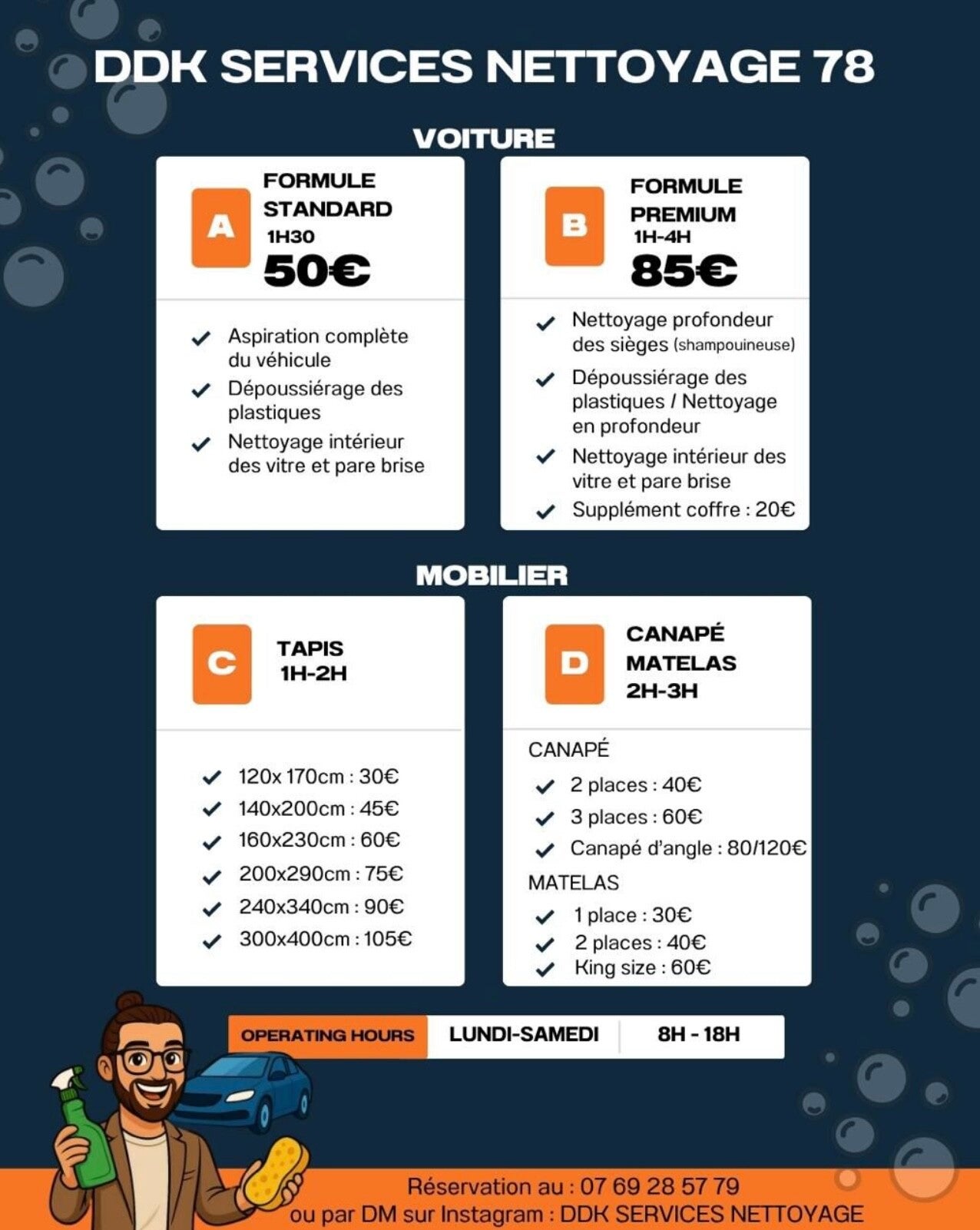 Bienvenue chez Ddk auto 78, votre spécialiste du nettoyage automobile dans les Yvelines (78). Nous sommes une nouvelle entreprise passionnée par la propreté et la perfection, dédiée à redonner à votre véhicule son éclat d'origine. Notre engagement : une qualité irréprochable et un service client exceptionnel. Découvrez notre approche unique pour un nettoyage auto qui dépasse vos attentes. Ensemble, faisons briller votre voiture !